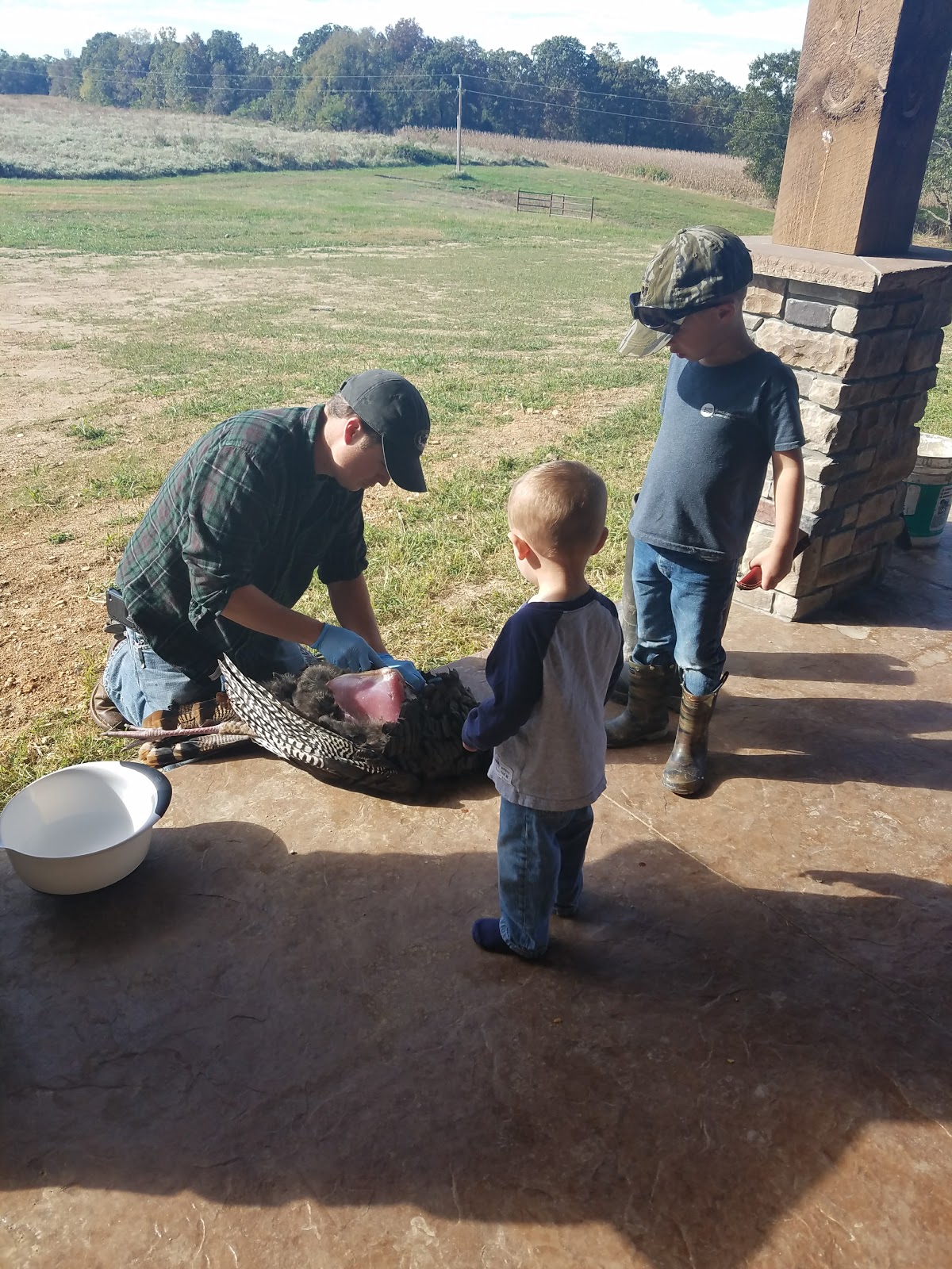 Drew killed a turkey during the Fall season. The boys thought it was intriguing!